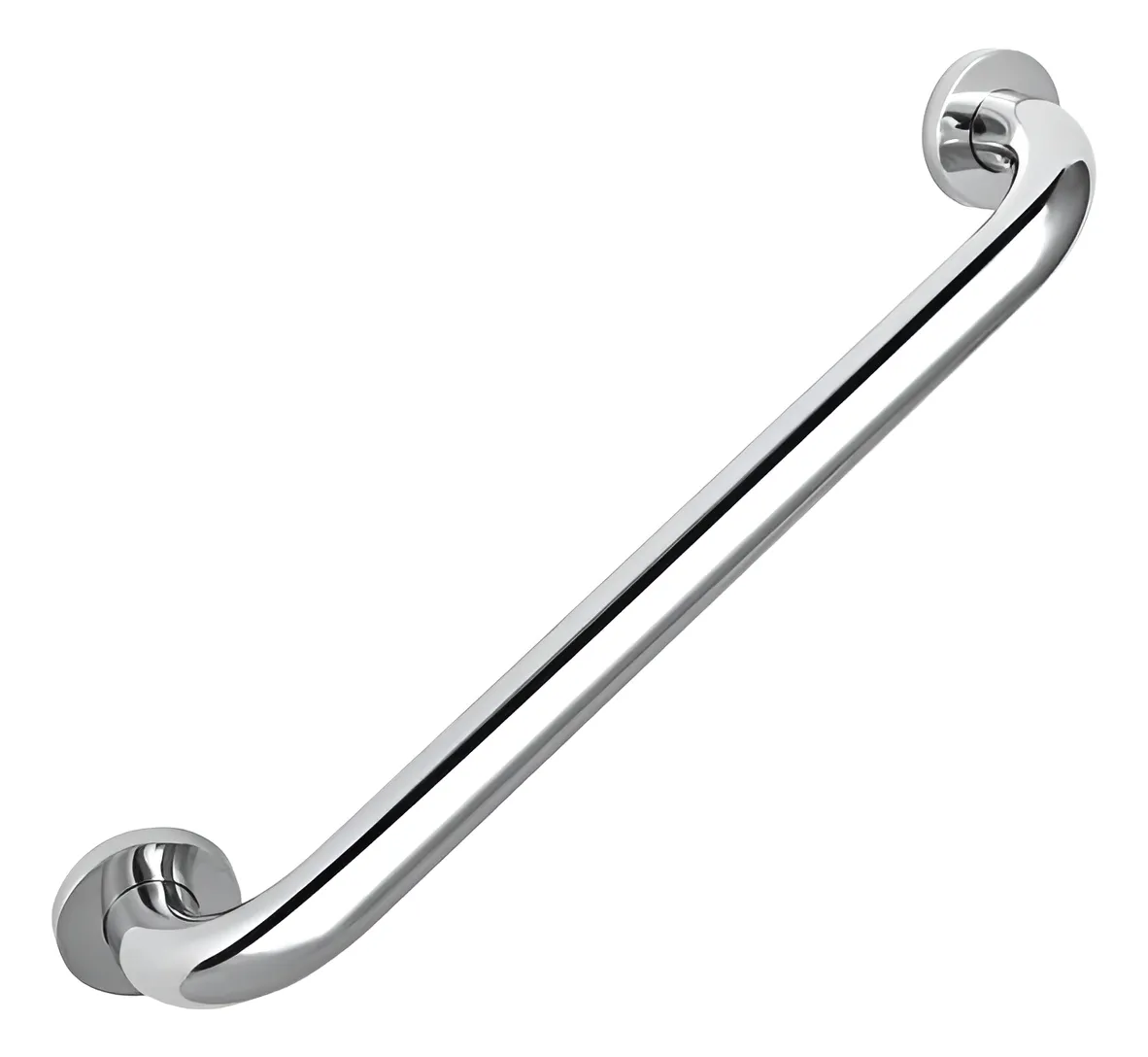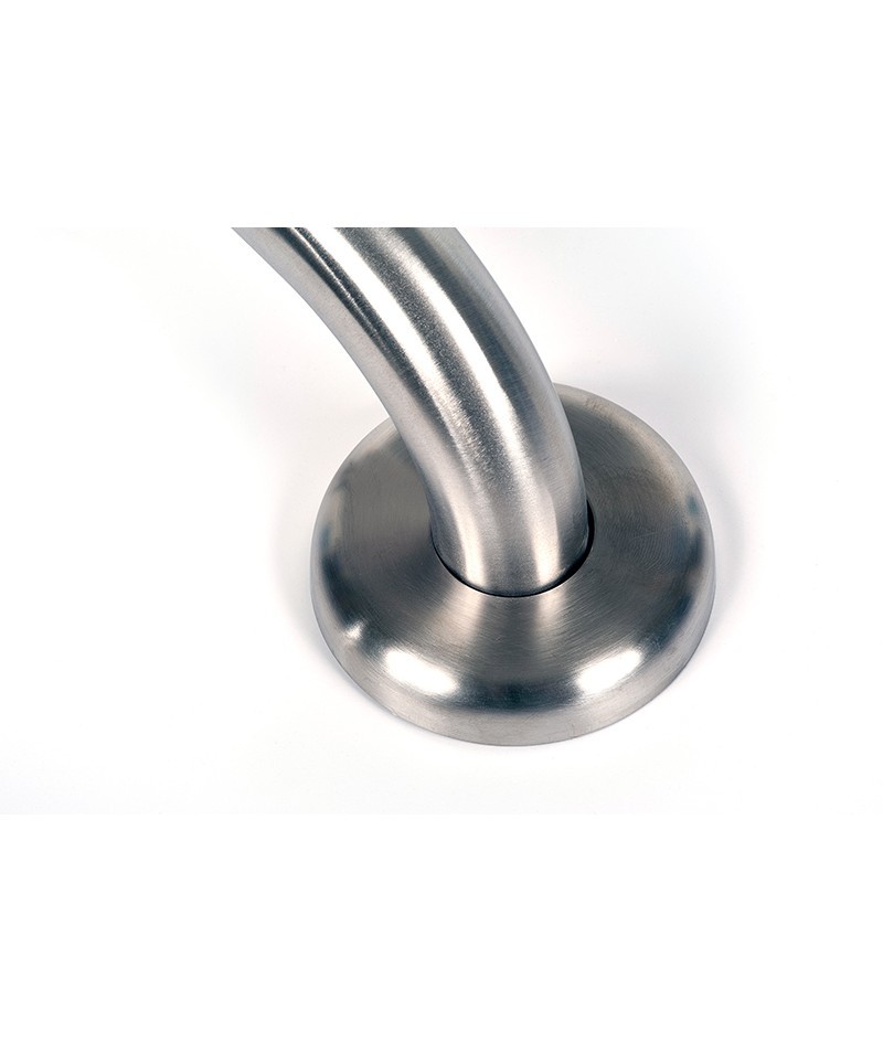 Barra de apoyo mural fija fabricada en acero inoxidable, acabado satinado de 600 mm. de longitud, con embellecedor para ocultar la tornillería incluida.